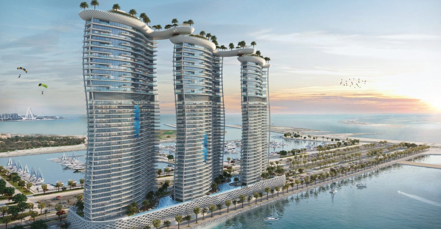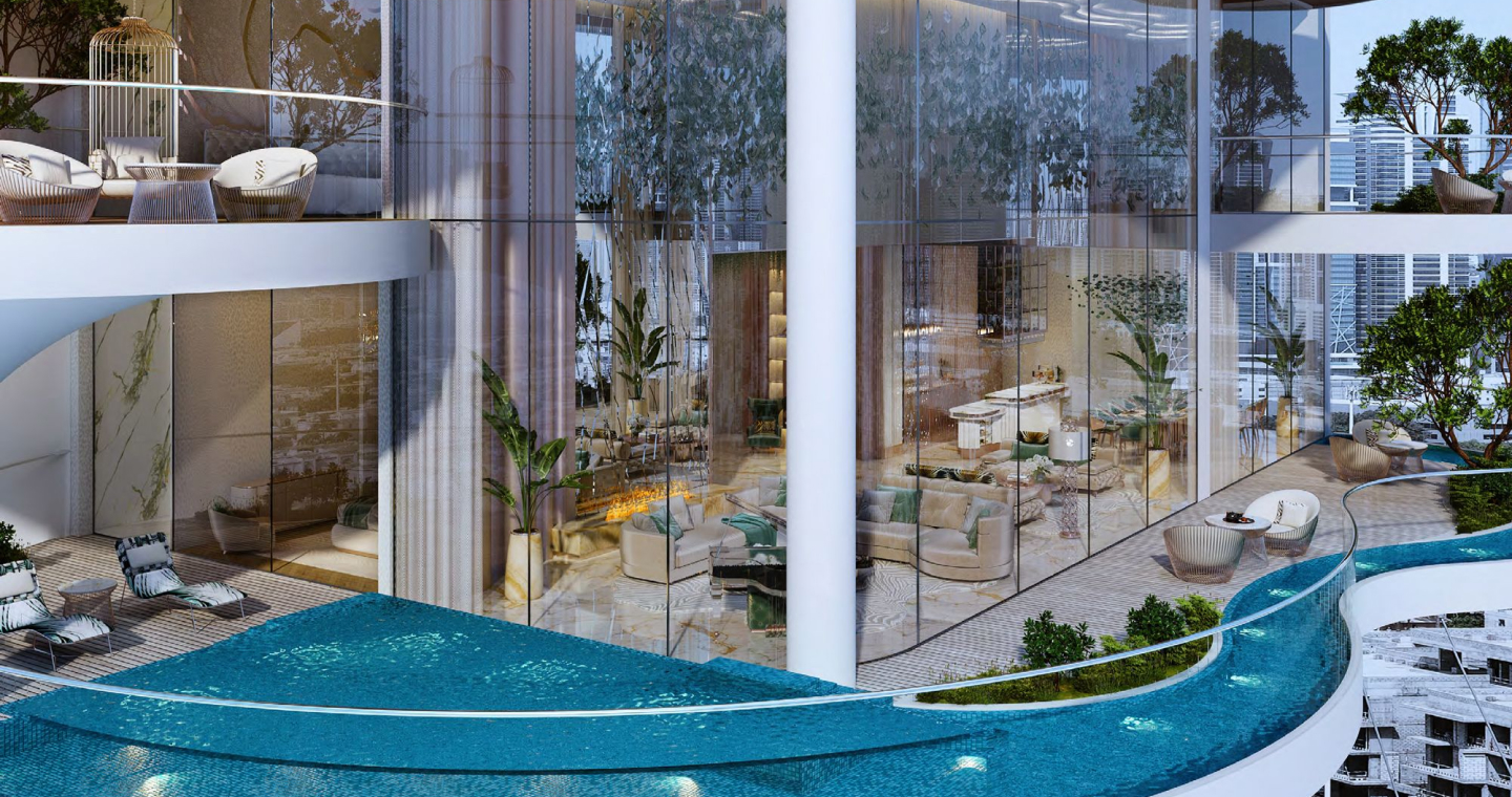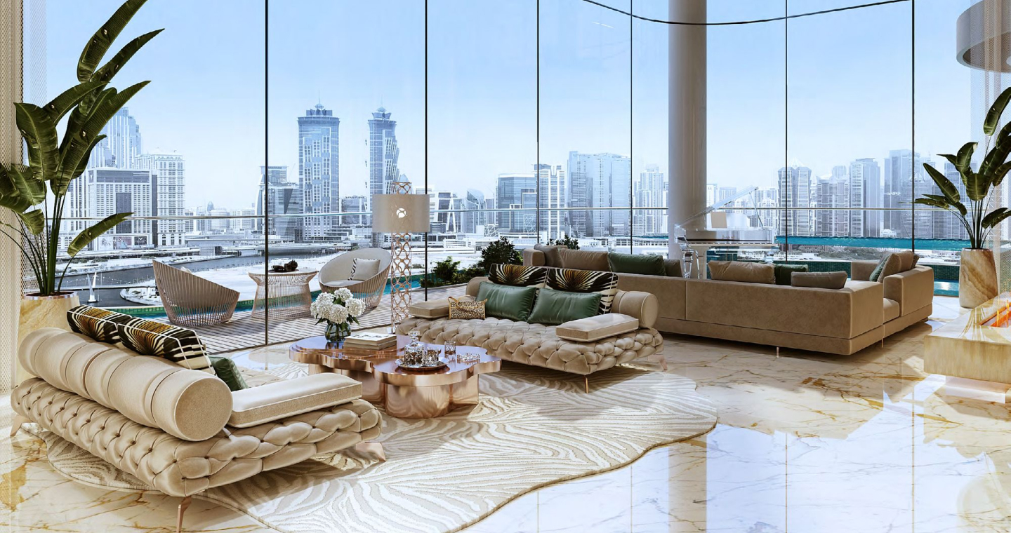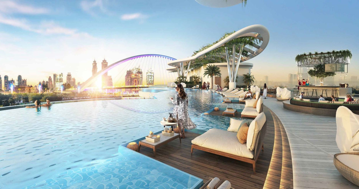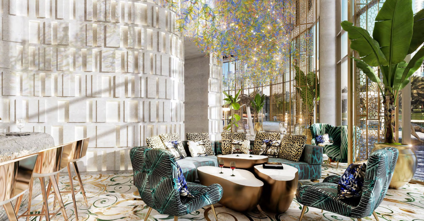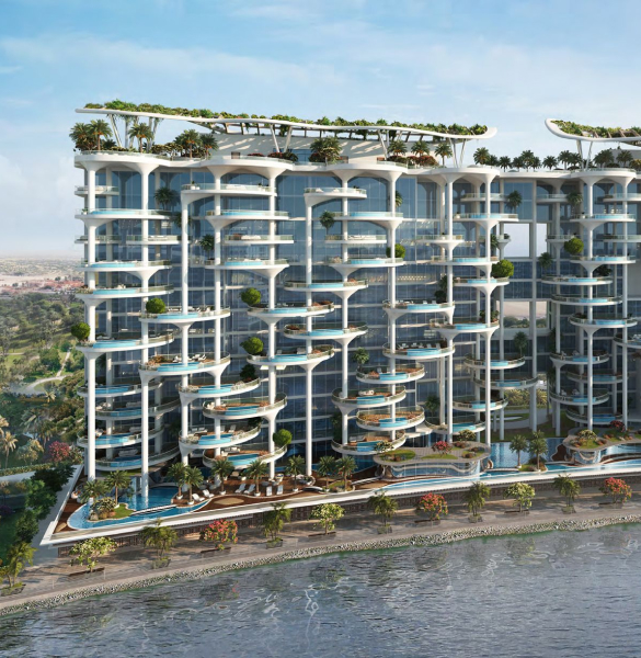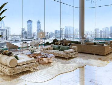 DAMAC Bay by Cavalli is an exclusive ultra-luxury residential complex from DAMAC. The unique 42-story project features an impressive undulating shape and offers a collection of luxury apartments and penthouses with stunning views of the Dubai Water Canal, Safa Park, Arabian Gulf, Burj Al Arab and Burj Khalifa. This is a real oasis in the middle of the city. The concept of the complex is a combination of lush vegetation and sparkling crystal water: green plants and an infinity pool will be placed on the roof of the building under a canopy.
