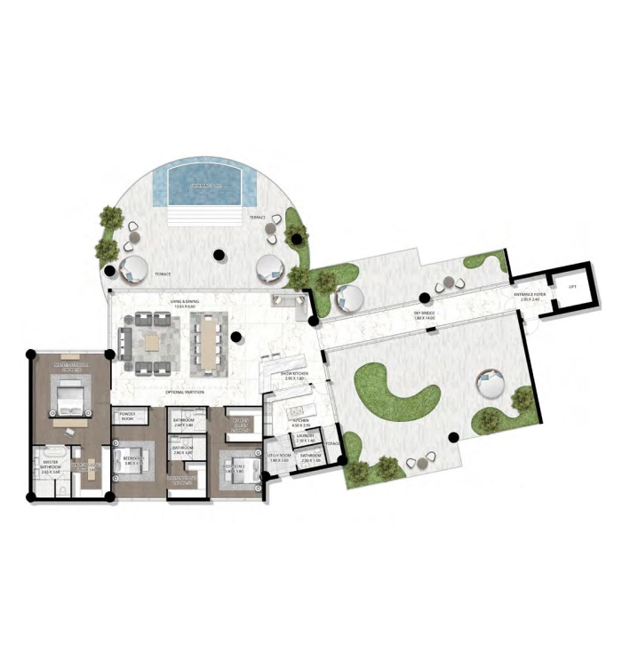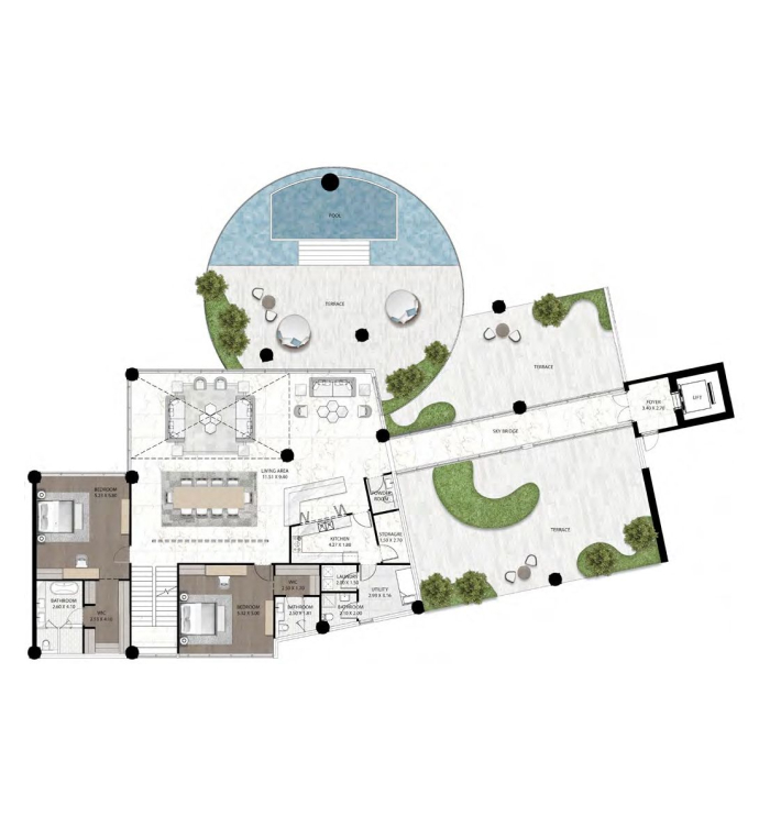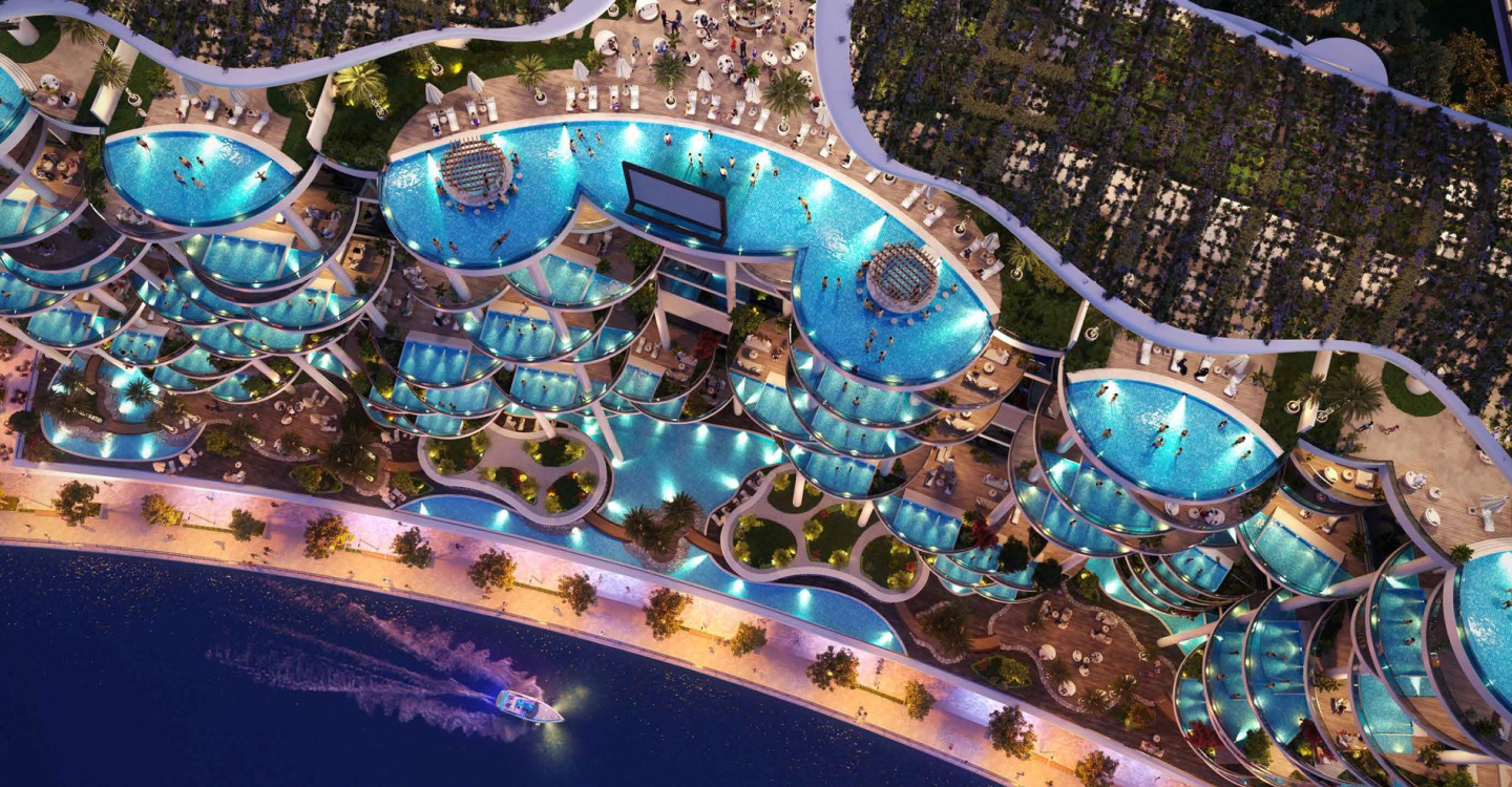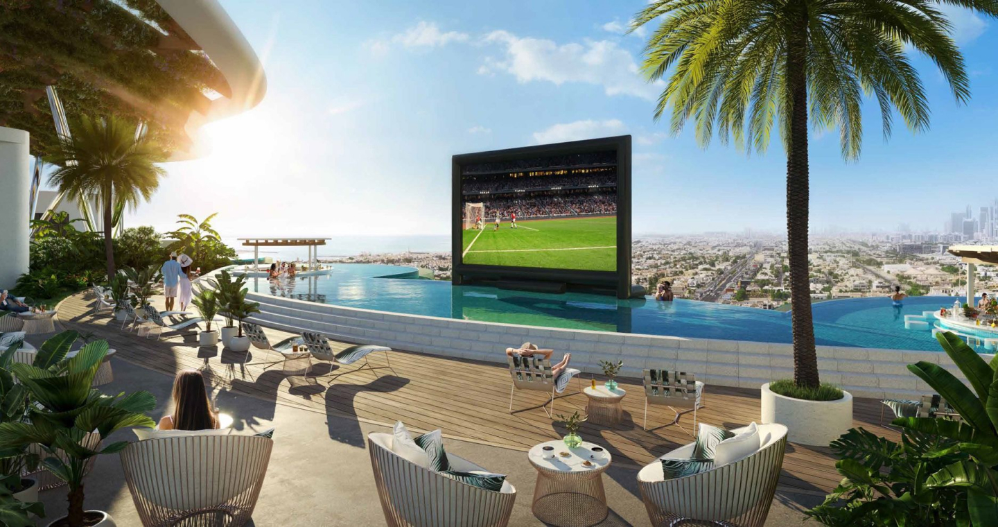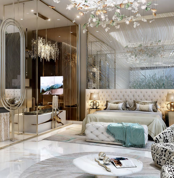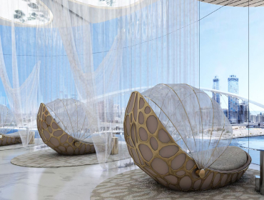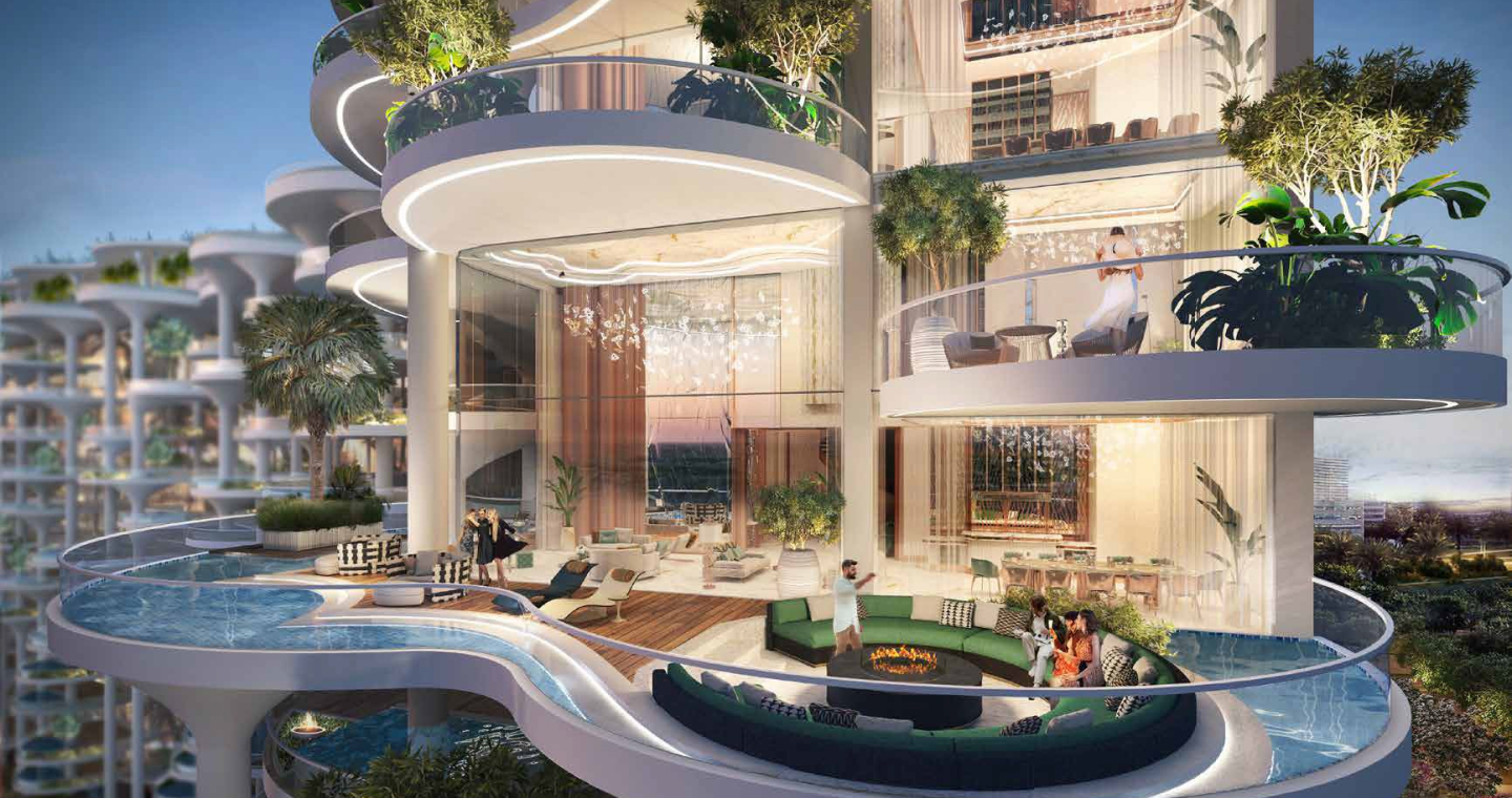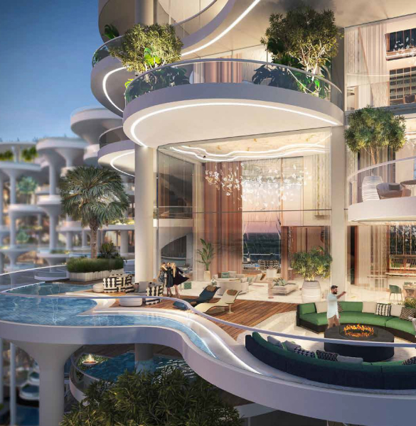 DAMAC Bay by Cavalli is an exclusive ultra-luxury residential complex from DAMAC. The unique 42-story project features an impressive undulating shape and offers a collection of luxury apartments and penthouses with stunning views of the Dubai Water Canal, Safa Park, Arabian Gulf, Burj Al Arab and Burj Khalifa. This is a real oasis in the middle of the city. The concept of the complex is a combination of lush vegetation and sparkling crystal water: green plants and an infinity pool will be placed on the roof of the building under a canopy.