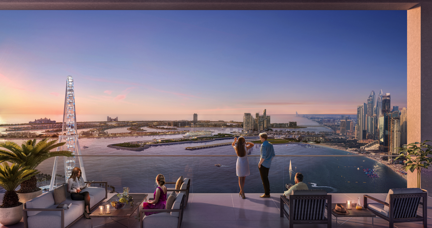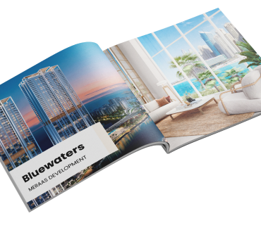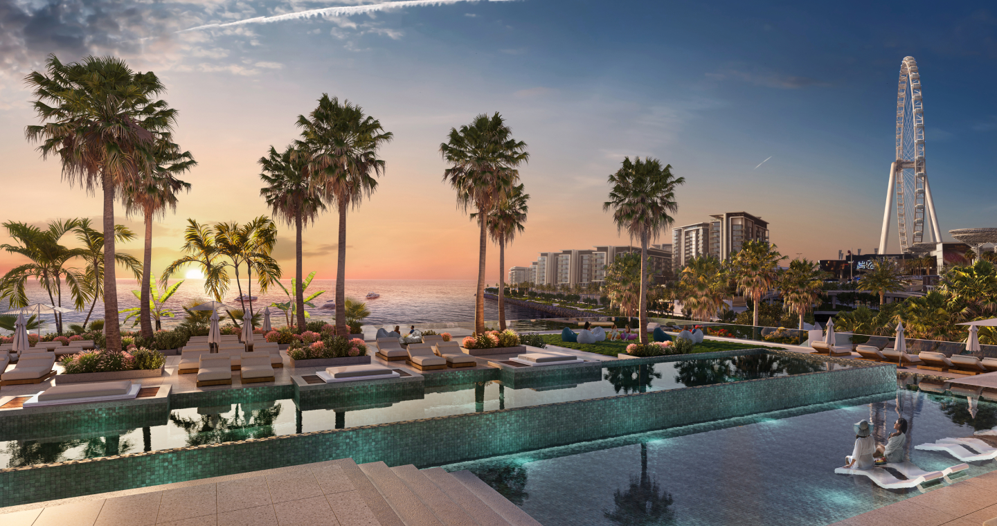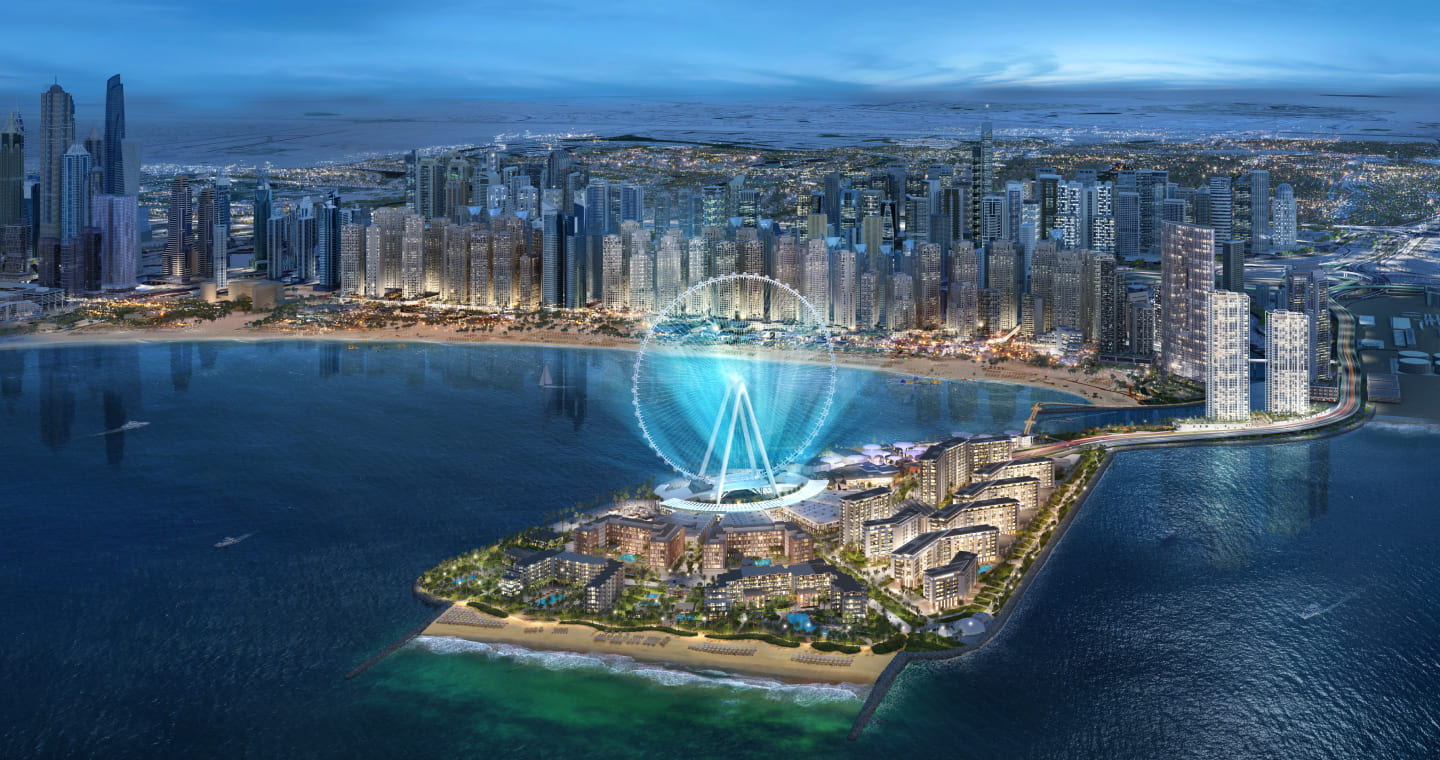 Проект Meraas Bluewaters включает в себя 10 многоквартирных домов, 17 таунхаусов и 4 пентхауса с видом на море и самое большое и высокое колесо обозрения в мире - Ain Dubai, расположенное рядом с пляжем Джумейра. Отсюда открывается чарующий вид на пляж JBR. Помимо того, что здесь самое большое в мире колесо обозрения, на острове находится музей восковых фигур Мадам Тюссо. Здесь второй после Лас Вегаса отель Caesars Palace, а также ресторан от известного шеф-повара Гордона Рамзи. Также на острове помимо ресторанов, магазинов и кафе находится самый лучший пляжный клуб.
